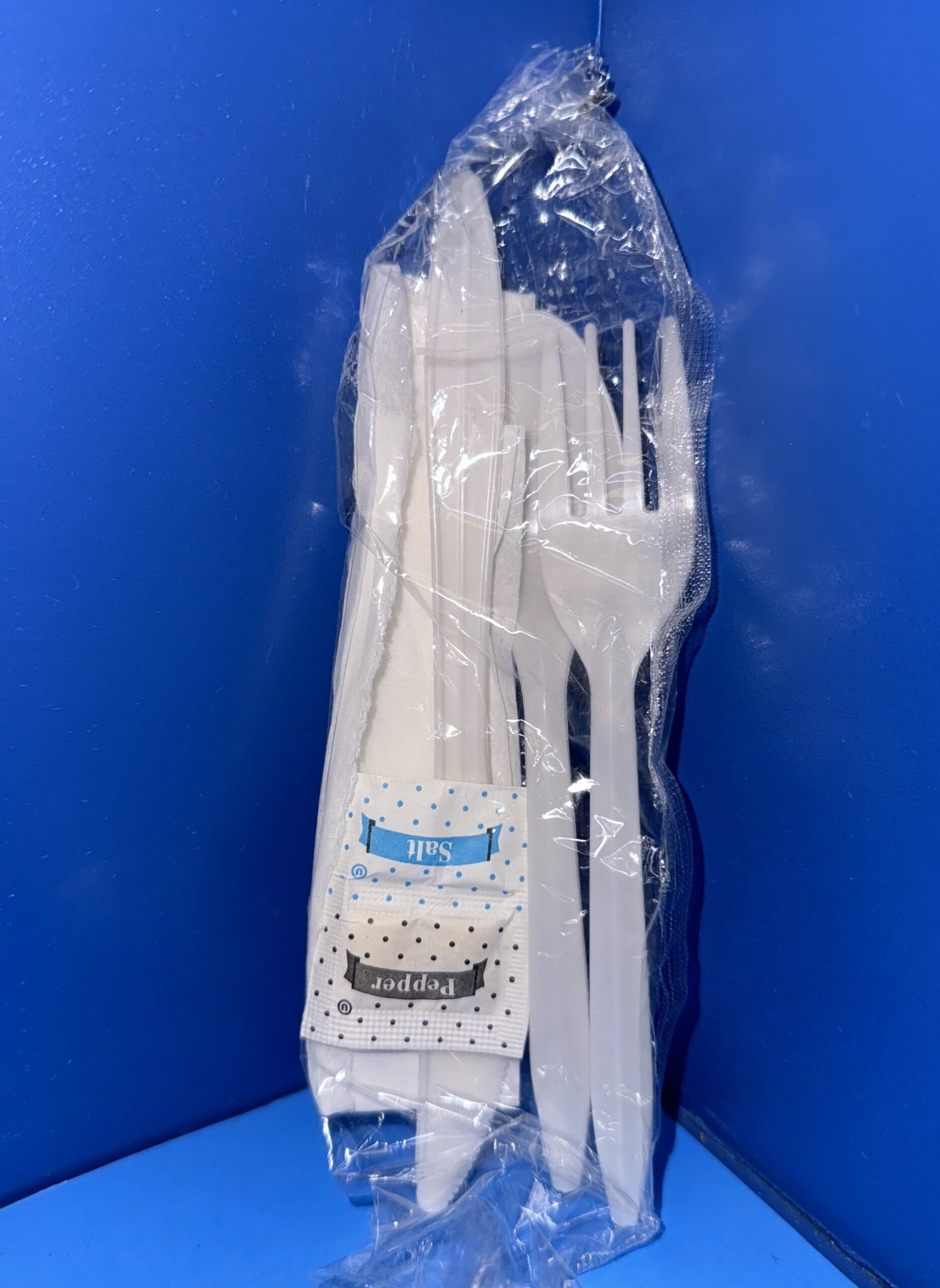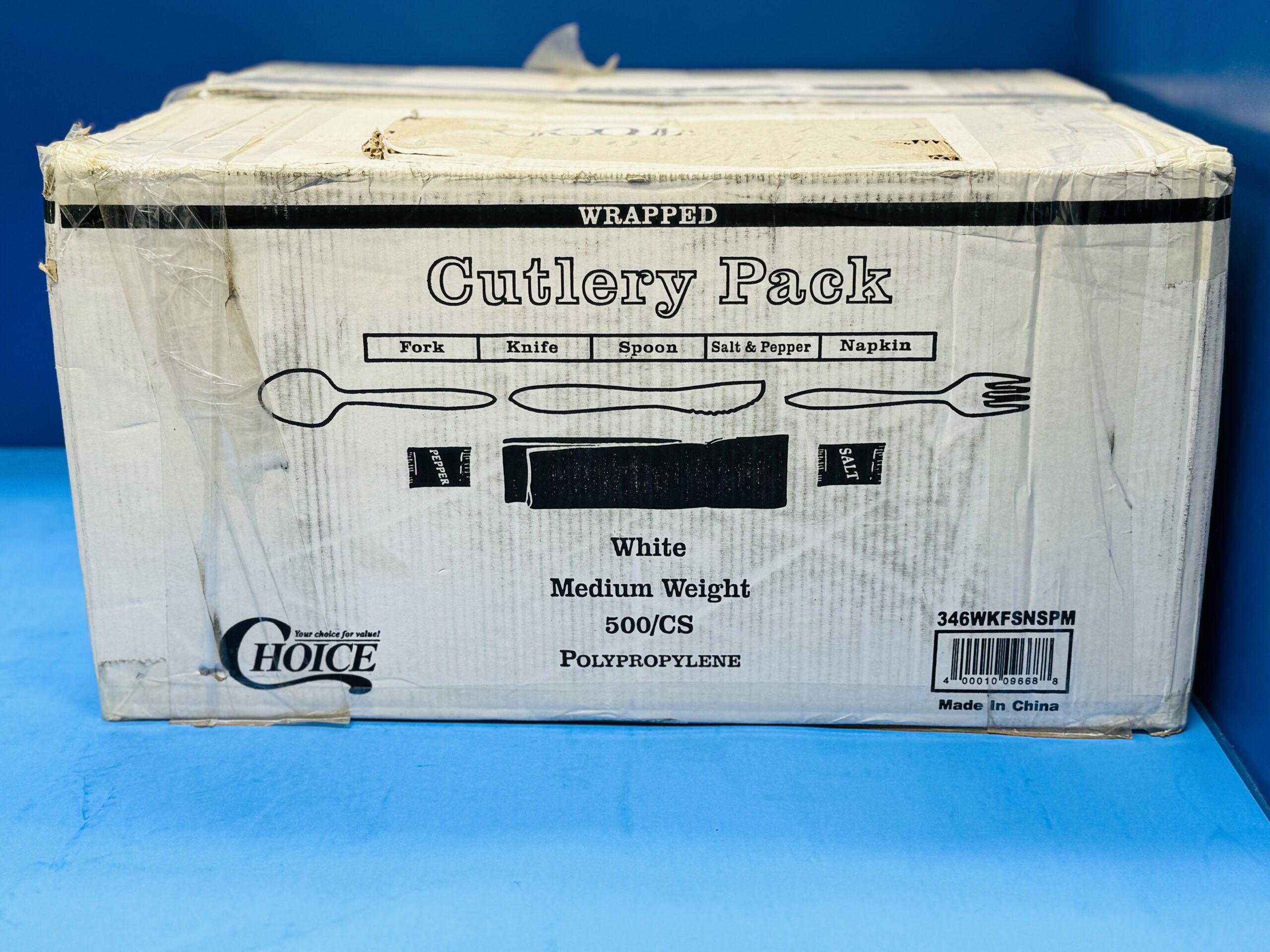 Choice Wrapped Cutlery Packs, White, Medium-Weight, Polypropylene, 500 Per Case;
