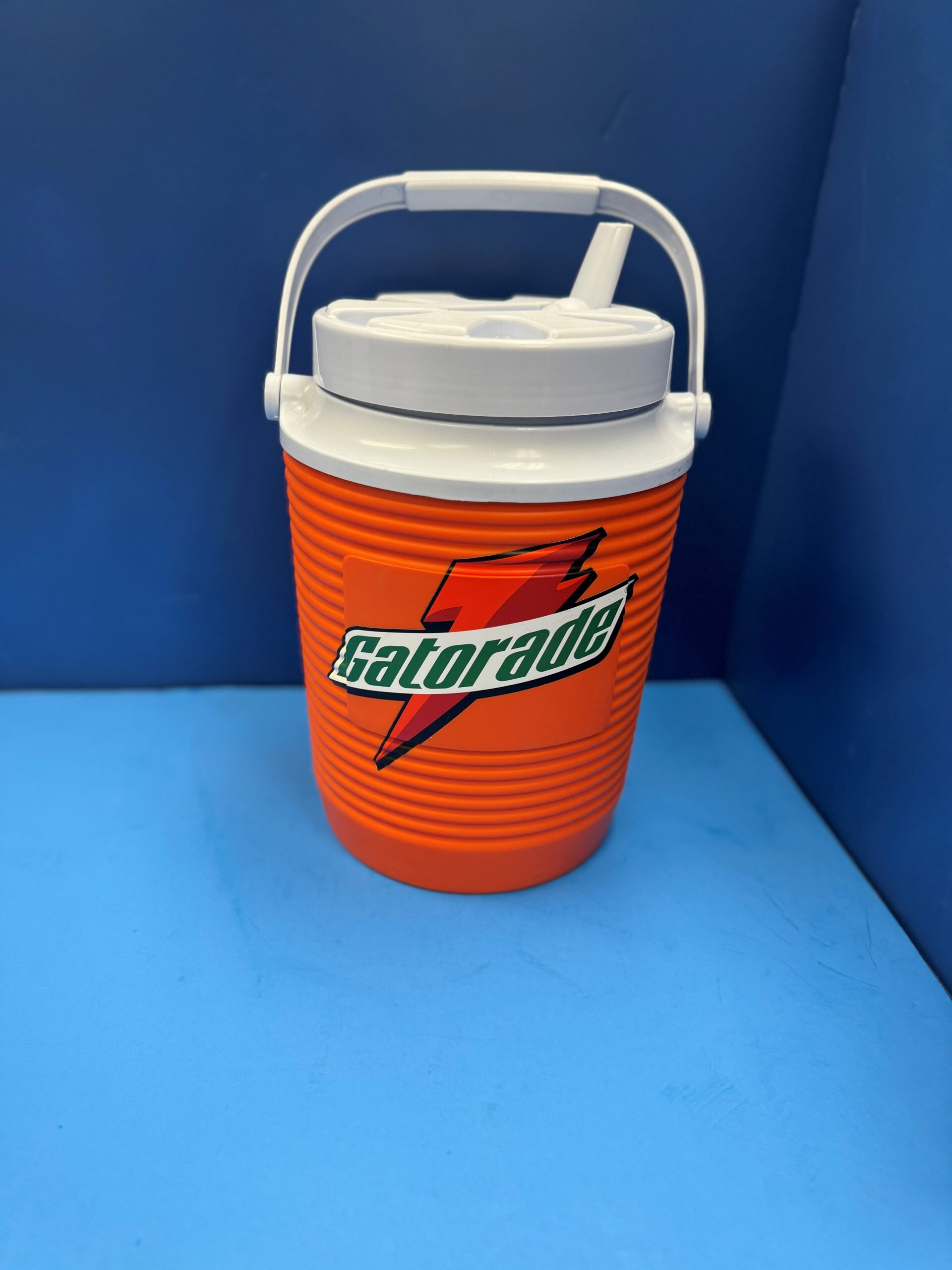 Rubbermaid Water Cooler with Bail Handle & Leak-Proof Spout, 2 Gal, 7.6 Liters, 9.7″ Dia, Orange/White;
