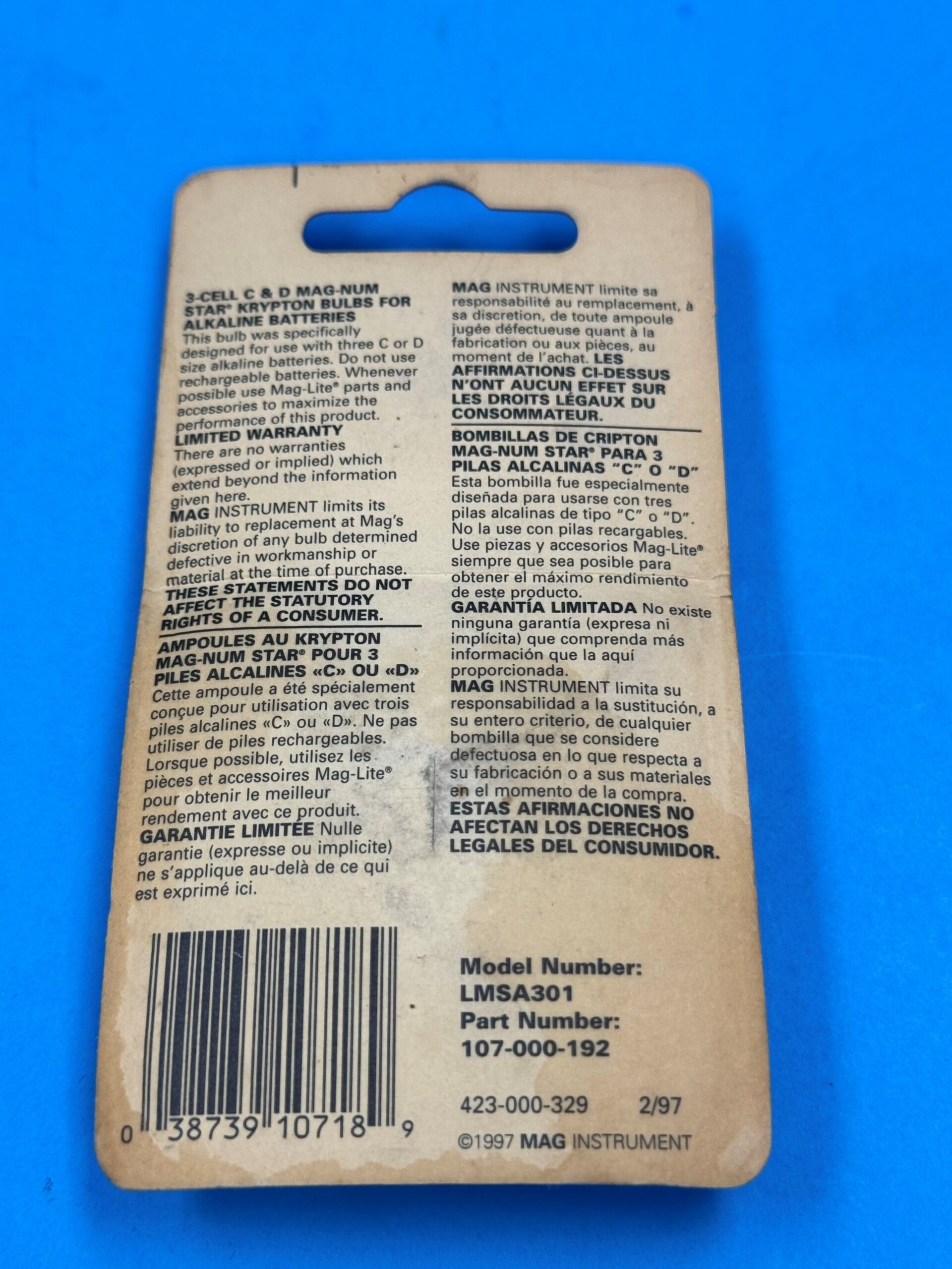 Mag-Lite Mag-num Star Replacement Lamp, Krypton Bulb, For Use with C & D Cell;