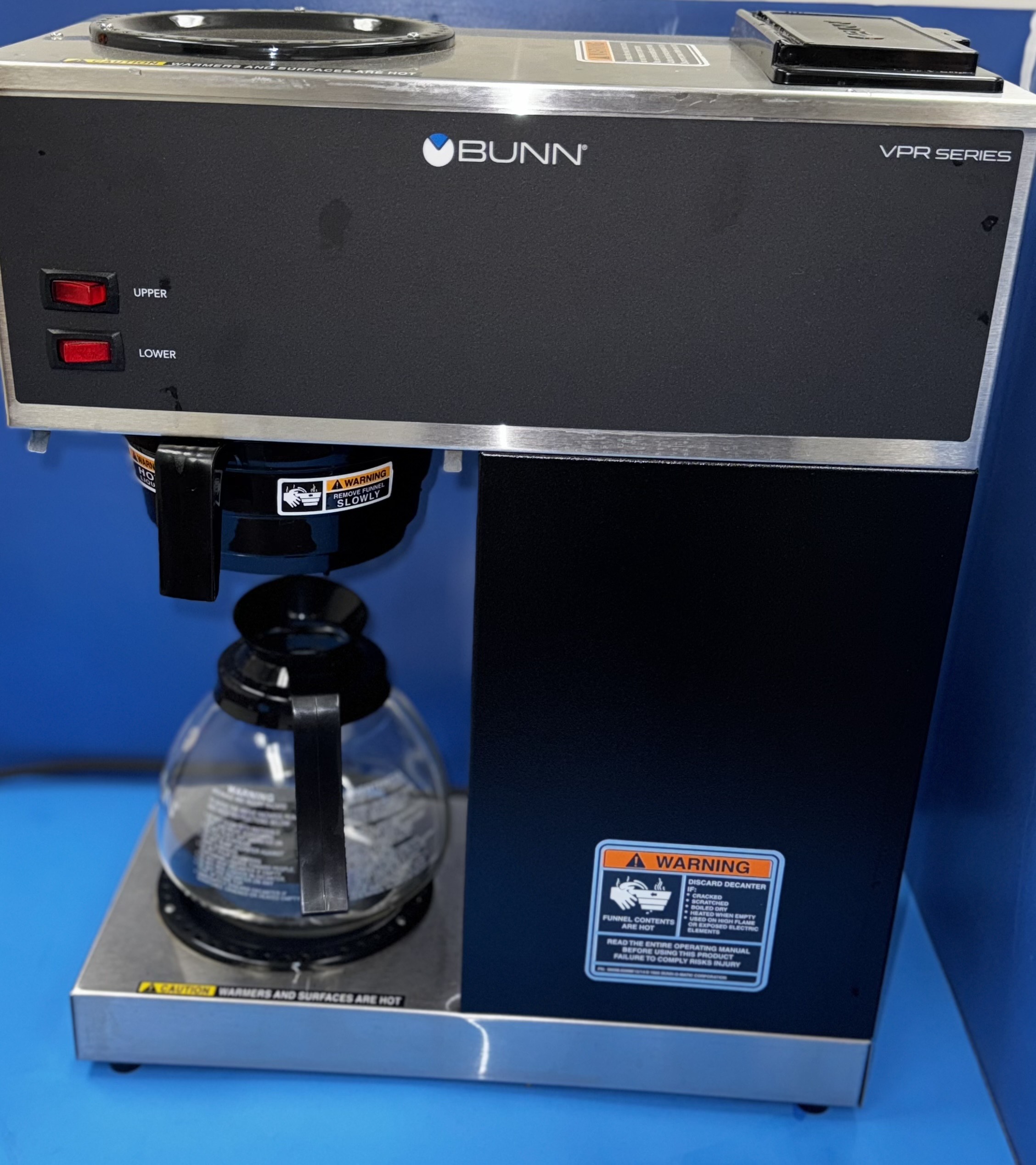 Bunn 33200.0015 VPR Black 12-Cup Pourover Coffee Brewer with 1 Upper and 1 Lower Warmer and 2 Glass Decanters – 120V;