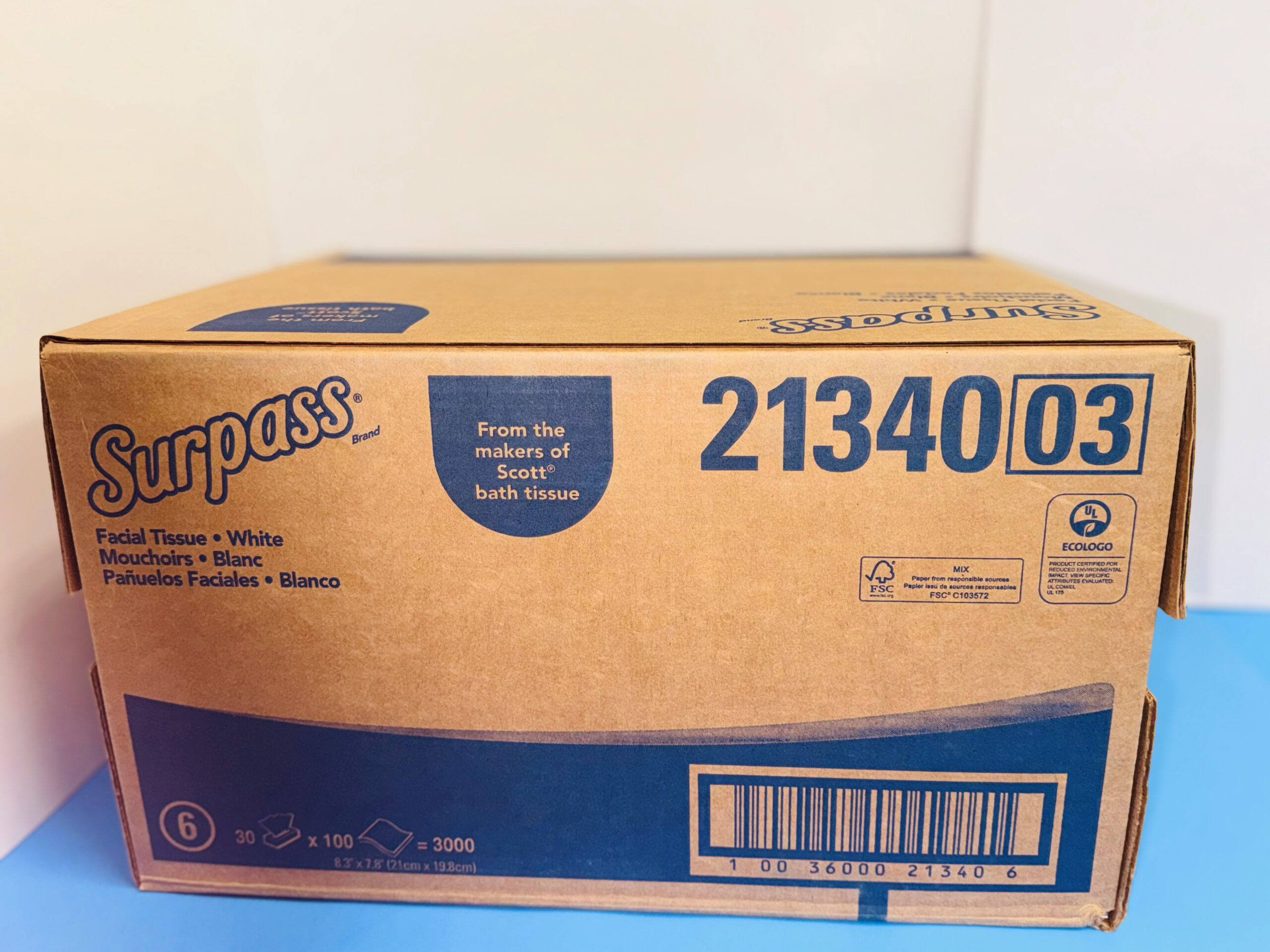 Surpass Facial Tissue, 8.3″ x 7.8″, 100 Sheets Per Box, 30 Boxes Per Case;