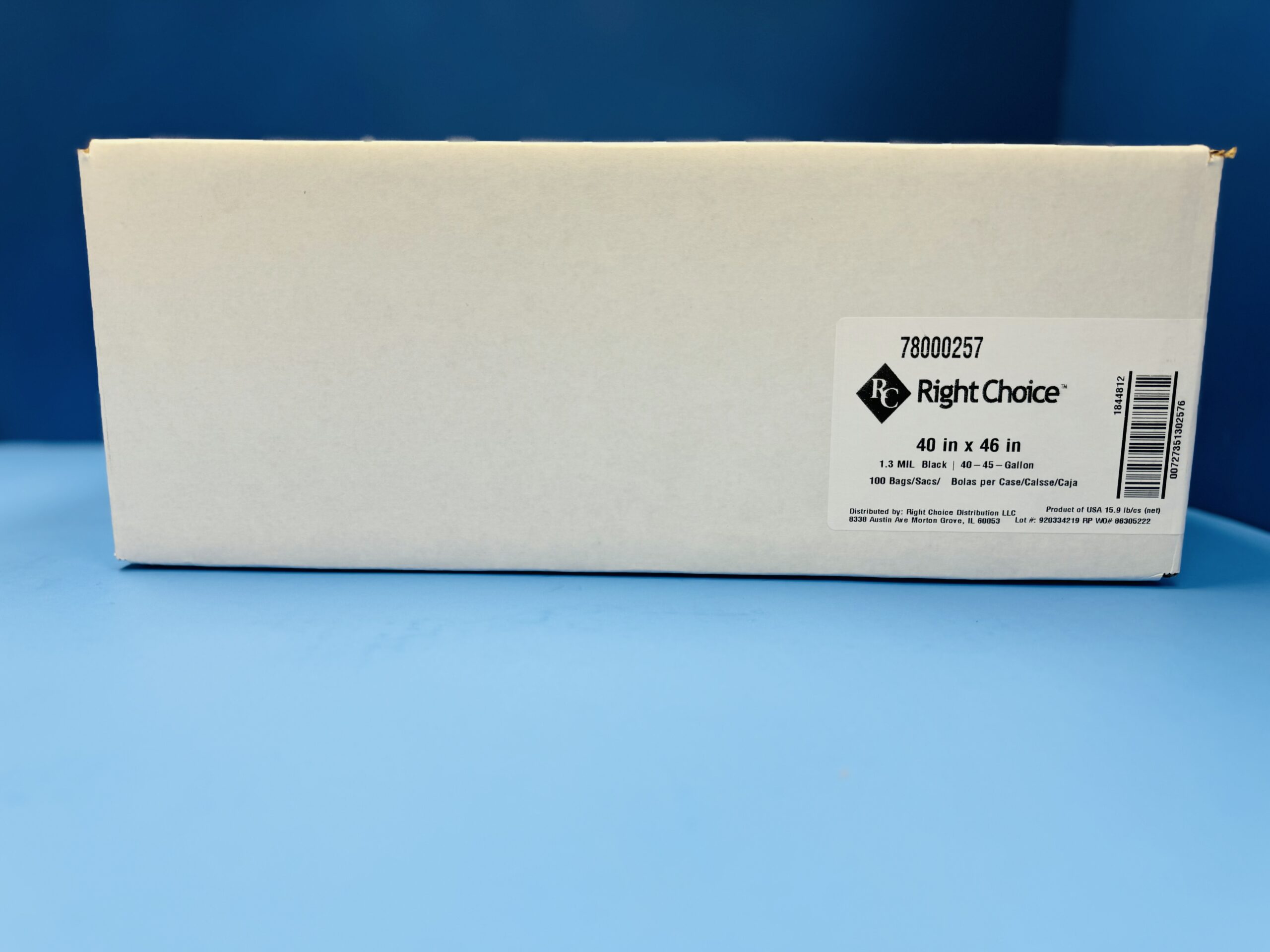 Black Trash Liners, 40-45 gal, 40″ x 46″, 1.3 mil, 20 Bags Per Roll, 5 Rolls Per Case;