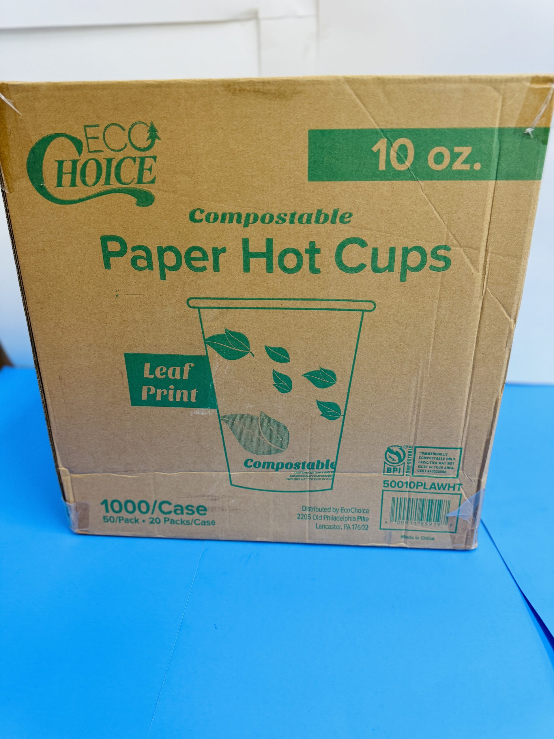 EcoChoice 10 oz Compostable Paper Hot Cups, 50 Per Pack, 20 Packs Per Case;