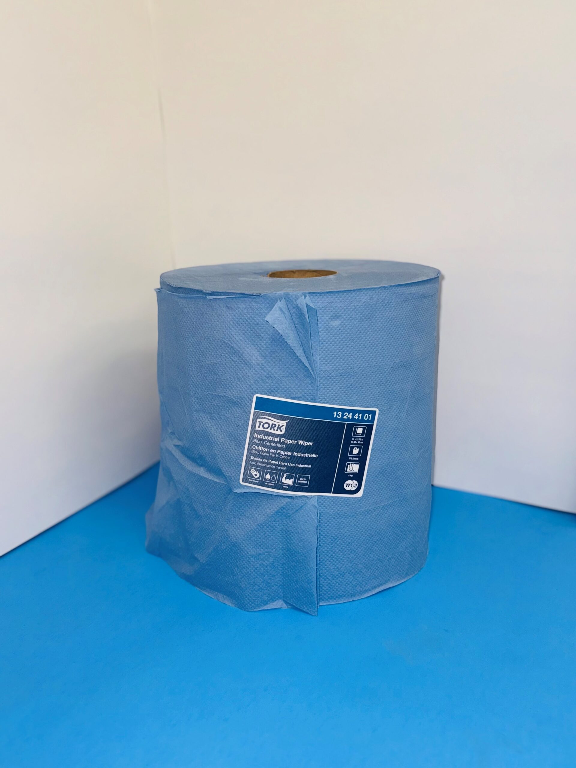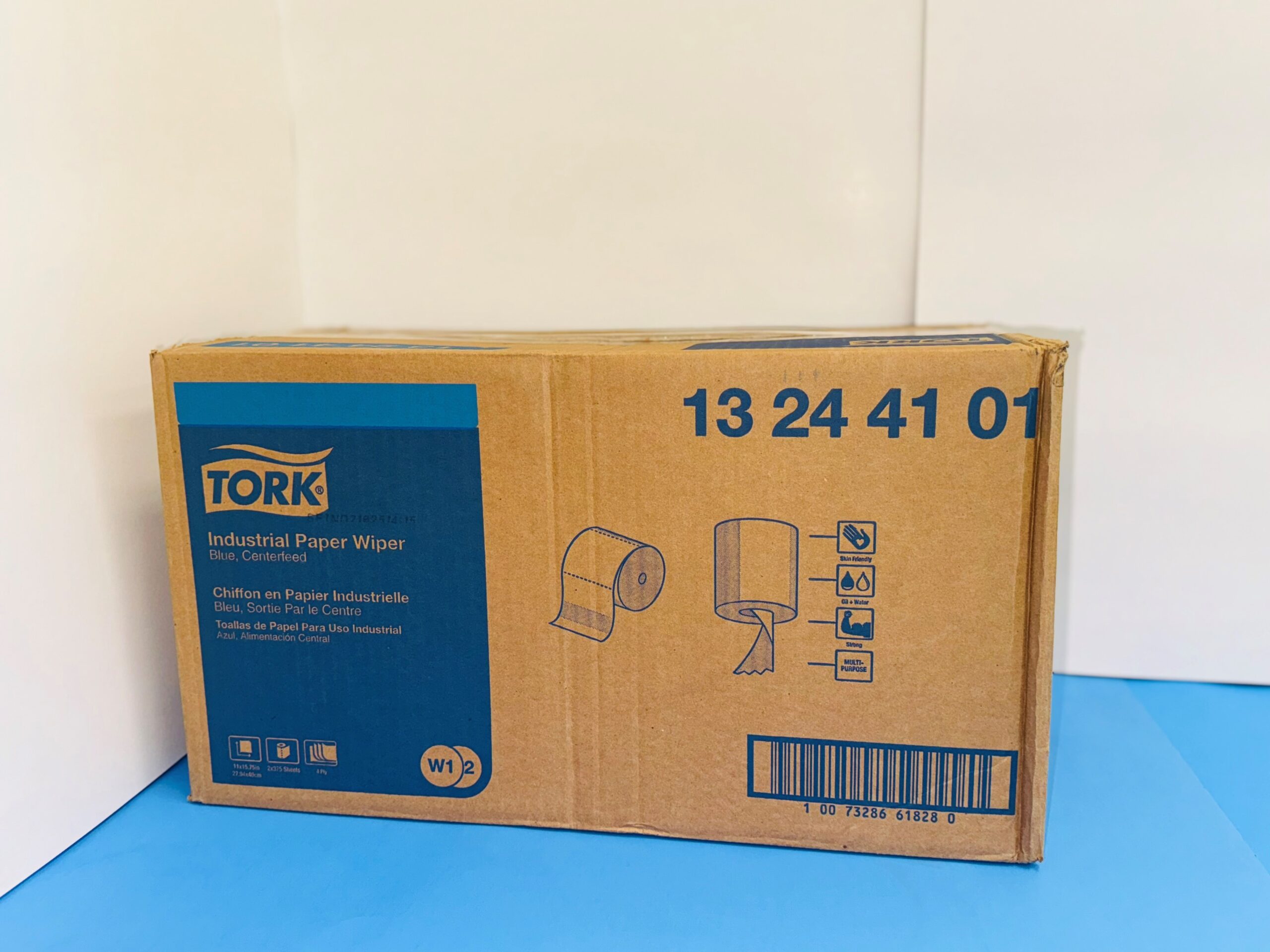Tork Industrial Paper Wipers, Blue, Centerfeed, 11″ x 15.75″, 4-Ply, 375 Sheets Per Roll, 2 Rolls Per Case;