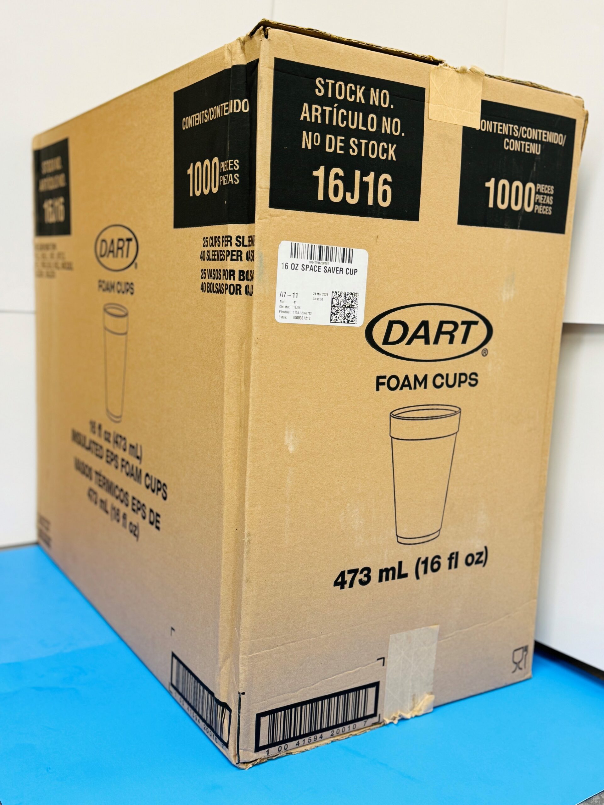 Dart Foam Cups, 16 fl oz, 1000 Count, 25 Cups Per Sleeve, 40 Sleeves Per Case;